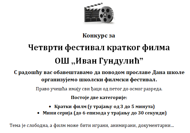 Четврти фестивал кратког филма ОШ „Иван Гундулићˮ